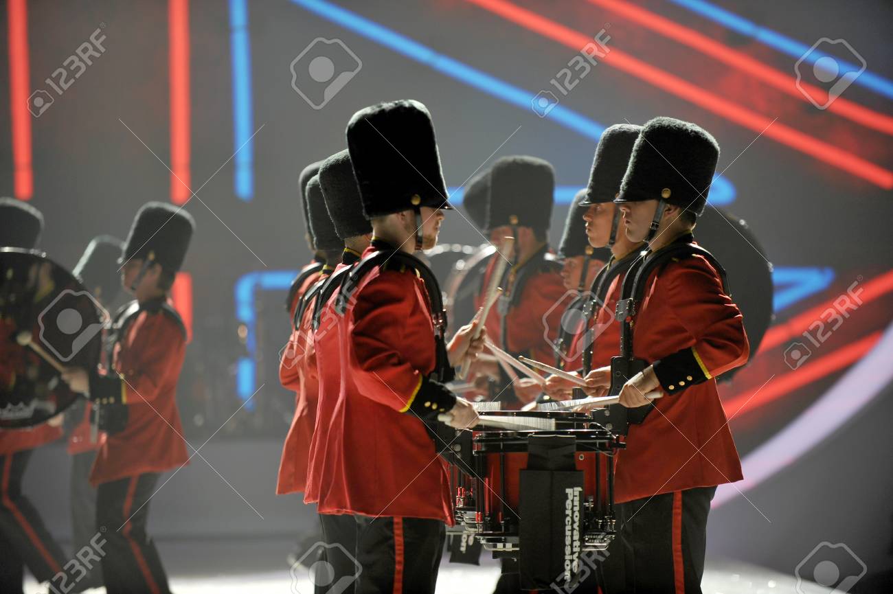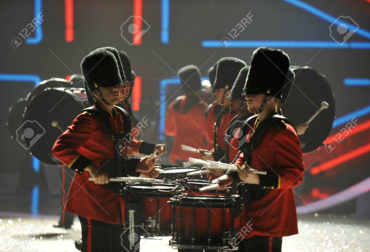 ニューヨーク Ny 11 月 13 日 13 年のブリティッシュ インヴェイジョンのセグメントを開くイギリス軍ドラマーのビクトリアシークレットファッションショー レキシントン アベニュー武器庫で 13 年 11 月 13 日ニューヨークでの の写真素材 画像素材 Image